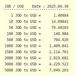 Jod To Usd Exchange Rate Jordanian Dinar To Us Dollar Conversion